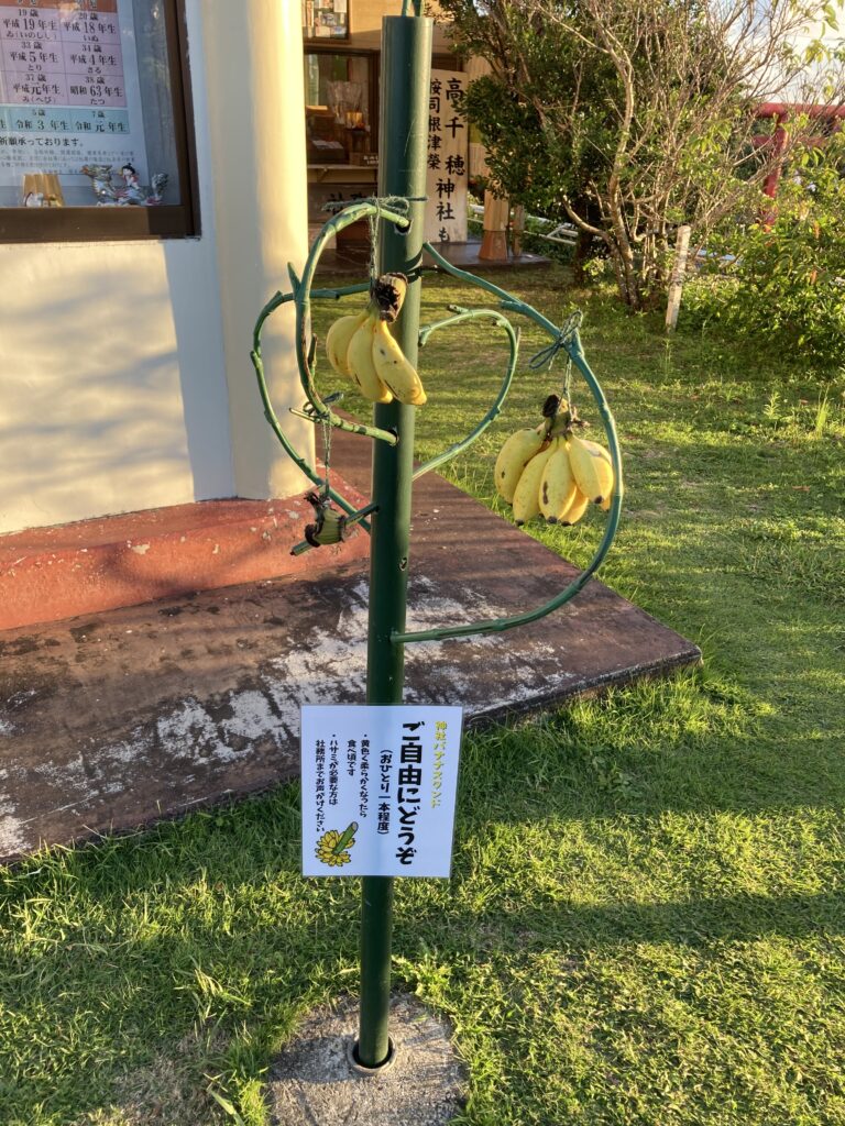 神社もありましたが、そこに無料の島バナナが(笑)