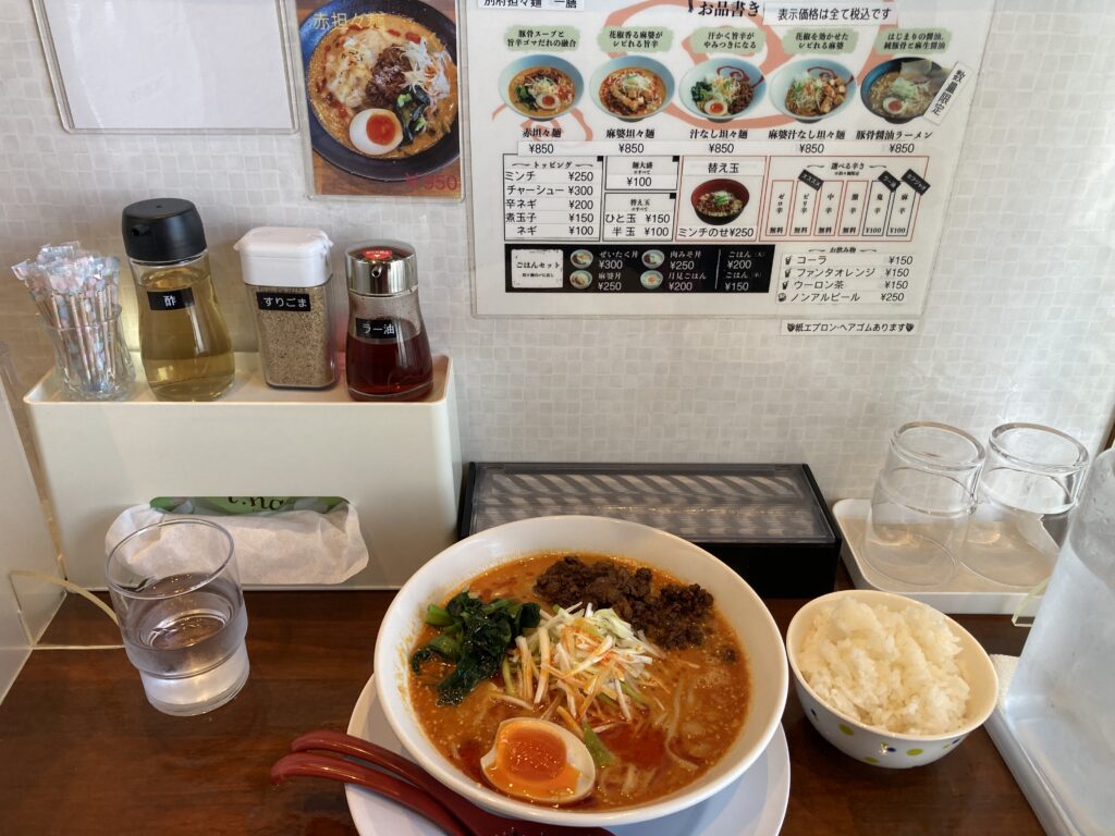 狭いものの、小綺麗な席に着席し、担々麵大盛りとライスを注文しました!