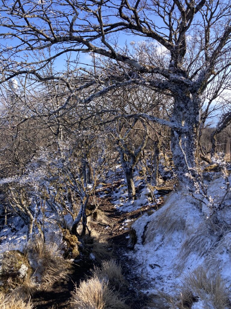 道は舗装され歩きやすいですが、さすが山頂ということもあり、雪がちらほらあります!